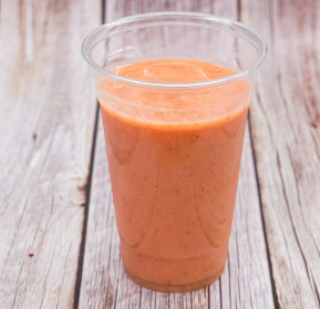 Mango, orange juice, strawberry, almond milk, coconut oil